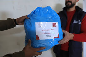 تم توزيع البطانيات على النازحين في المخيمات ومراكز الإيواء.